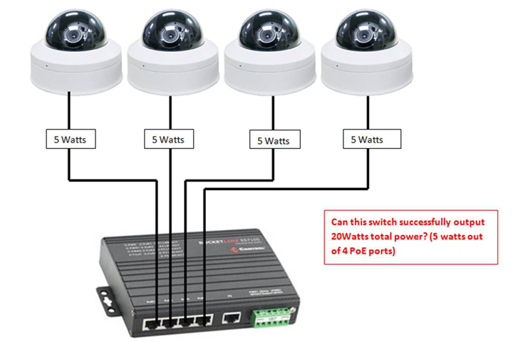 Tiếp đến, bạn cũng lưu ý đến tổng nguồn cấp khi muốn chọn một switch PoE ưng ý, bởi nếu nguồn cấp không đủ sẽ khiến hệ thống camera Ip PoE gặp trục trặc hoặc sự cố.