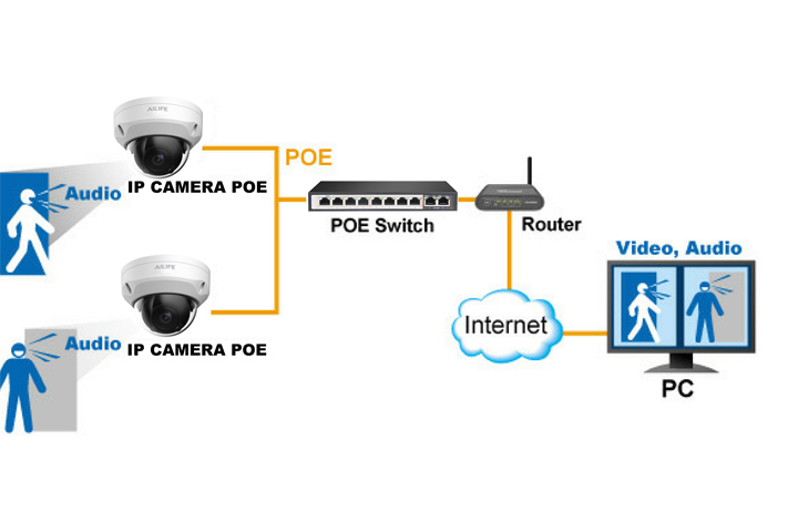 - Để dùng được camera IP PoE phải kèm theo Switch PoE, đầu ghi hình PoE để đồng bộ hệ thống