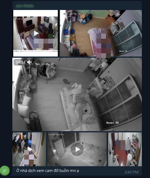 Những ngày qua, trên các nhóm kín của Telegram bỗng dưng dậy sóng trước hàng loạt clip được ghi lại từ các camera an ninh. Đáng chú ý, chúng là những thiết bị được lắp đặt tại phòng ngủ, phòng trọ hoặc trong những nhà nghỉ mà người trong nhà không hề biết, hoặc có biết thì cũng coi như không thể có chuyện bị hack.