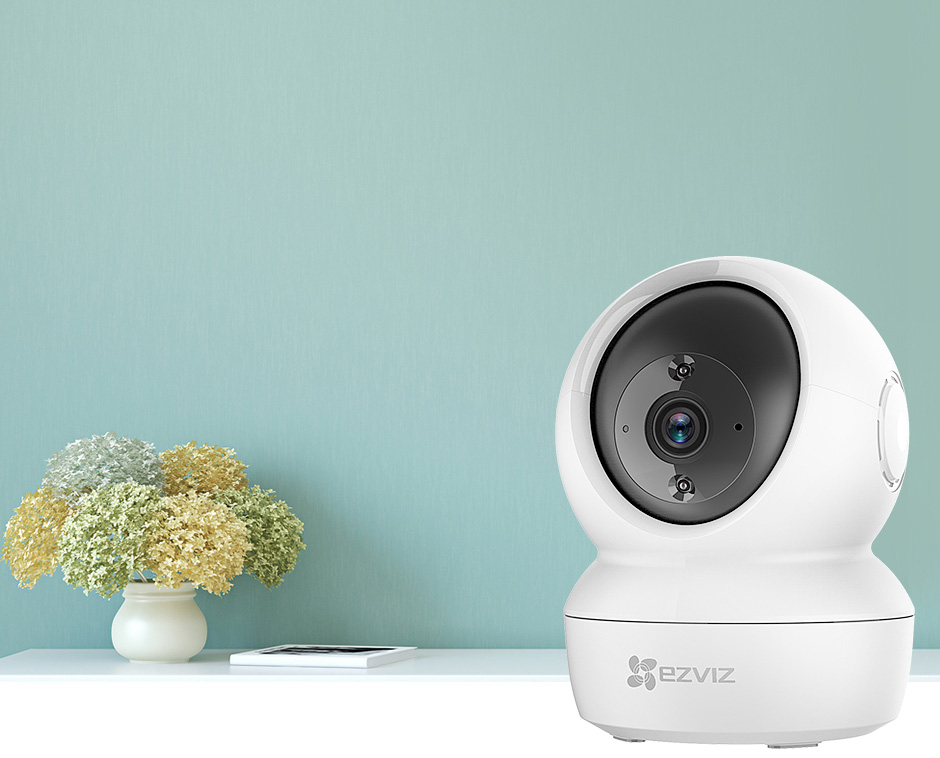 Camera Ezviz C6N là loại camera wifi trong nhà, có vỏ bằng nhựa, màu trắng và hình dạng Robot ngộ nghĩnh.